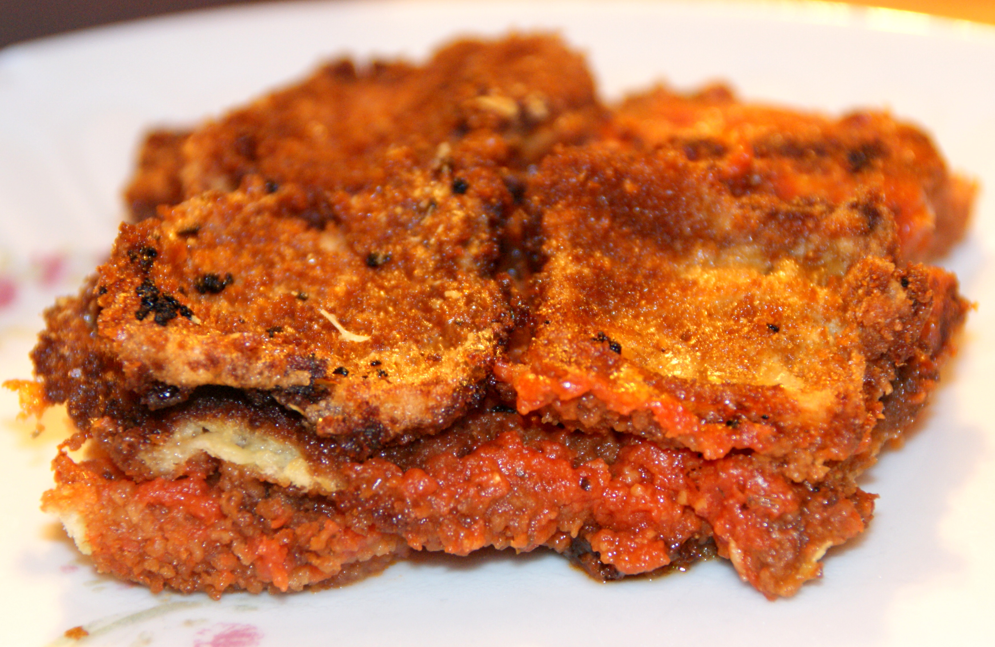 Farinez les tranches d’aubergines et retirez l’excédent de farine. Trempez les ensuite dans les oeufs battus puis dans la chapelure. Faites frire les aubergines en procédant en plusieurs fois. Egouttez-les sur du papier absorbant.