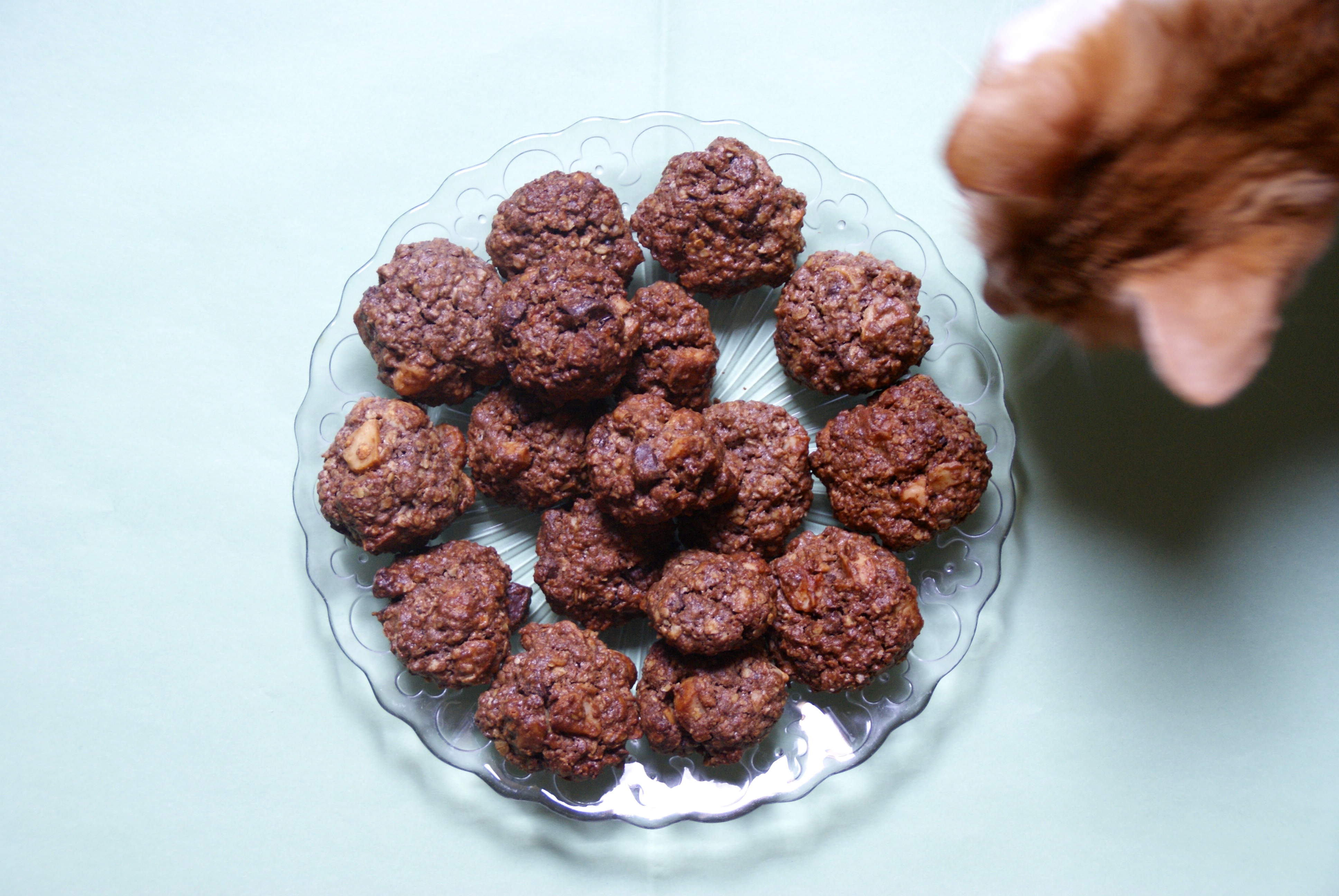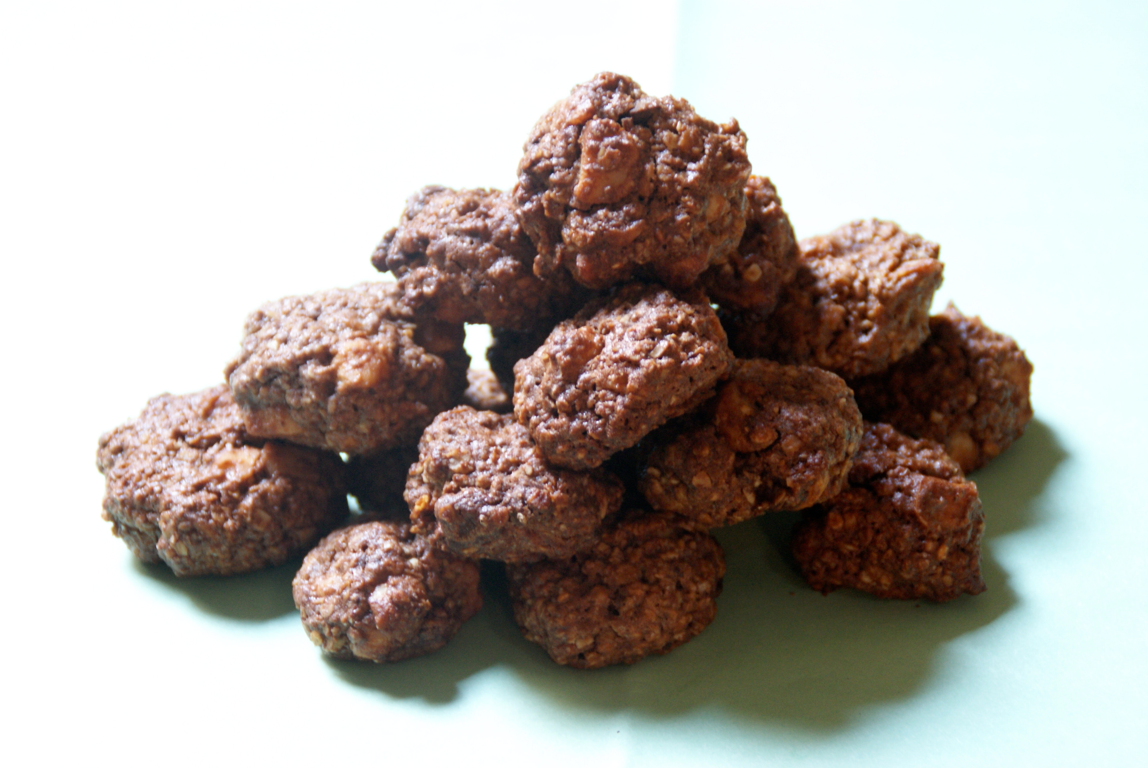 Il vous faut: 160g de farine, 30g de sucre, 3 ou 4 cuillères à soupe de Nesquick, 100g de Noix de Macadamia (j’avoue, c’est plutôt cher surtout si, comme moi, vous les prenez bio mais la qualité est vraiment là), et puis comme pour les autres 75g de beurre mou, 1 oeuf ainsi qu’une lichette de lait si besoin.