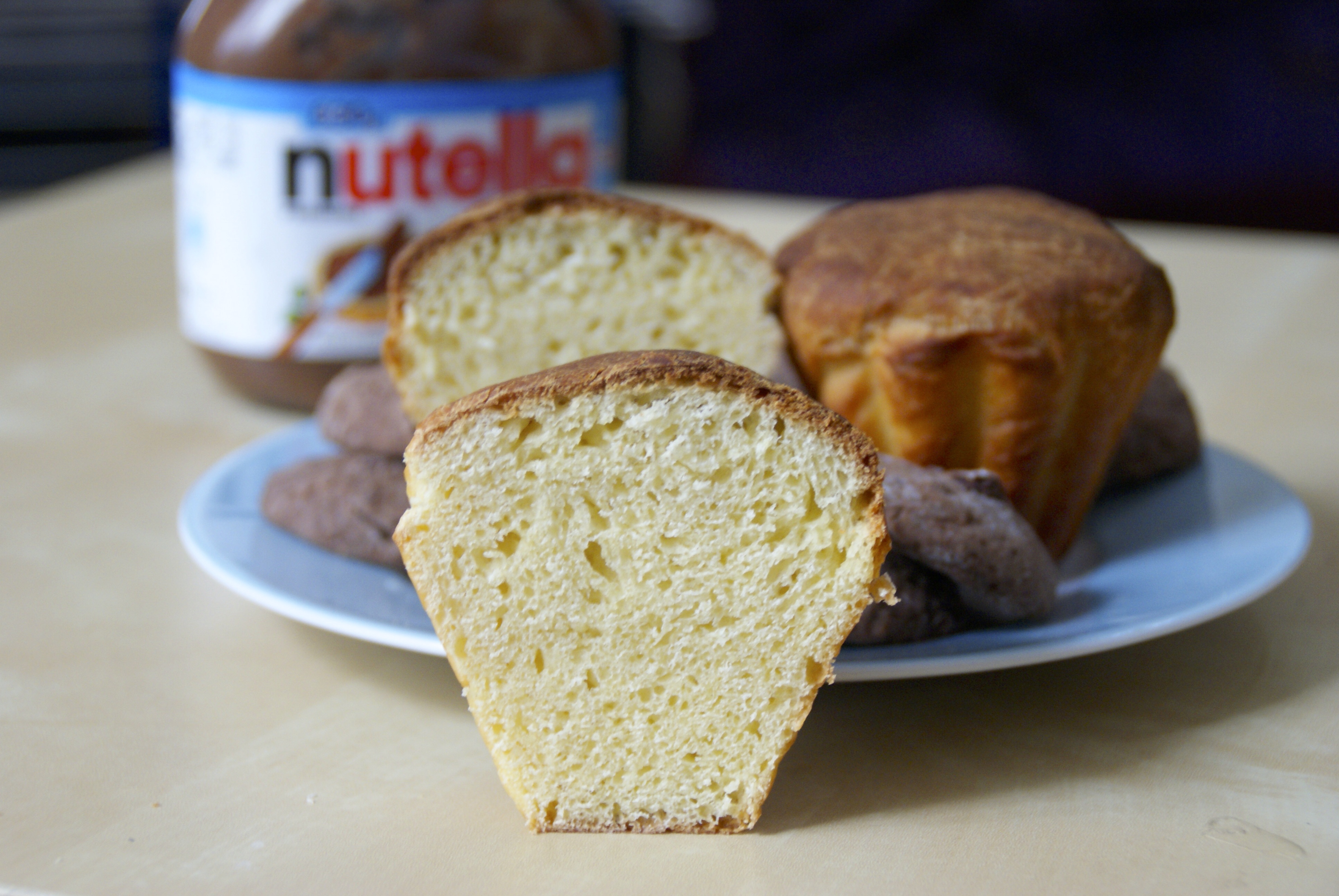 Il vous faut: 250g de farine, 1 sachet de levure boulangère, 3 cuillères à soupe de lait, 2 cuillères à soupe d’eau, 2 oeufs de taille moyenne et 1 jaune d’oeuf, 100g de beurre, 2 cuillères à soupe bombées de sucre, 1 cuillère à café rase de sel. Vous pouvez ajouter une cuillère à soupe de confiture, de pâte à tartiner ou de ce que vous voulez au milieu ^^