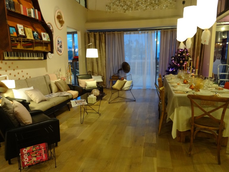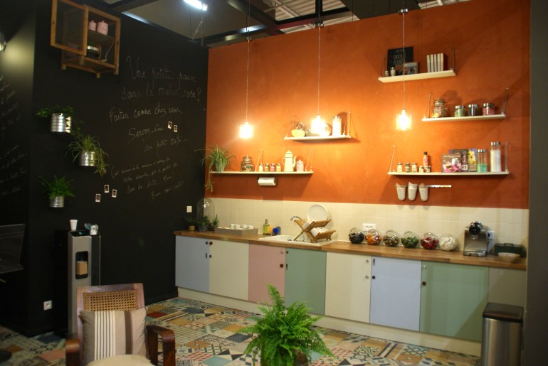 Bref, assez de discours, je vous montre ça en photo: à l’entrée un arbre à mot (en haut), la cuisine, le salon, la chambre, #jeveuxresterici, le coin lecture, le coin sympa où vous pouvez rester tranquille/déposez votre mec avec wifi et thé (il vous suffit de mettre 1€ dans la tirelire et faire votre vaisselle après).