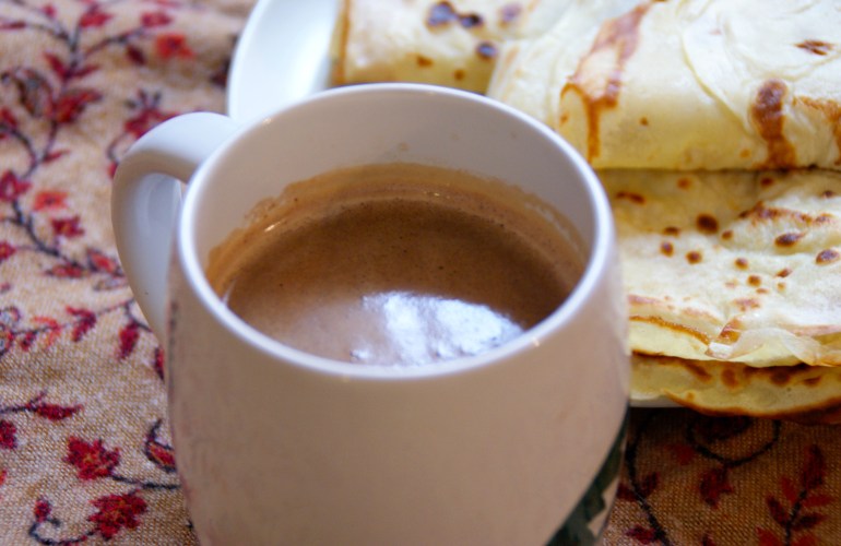 Hello! Vous allez bien, vous n’êtes pas trop affaiblis à cause d’une surdose de crêpes? Vous savez, je viens tout juste de découvrir Patti Smith (honte à moi de ne pas y avoir prêter plus d’attention avant!) et je suis totalement fan. C’est donc en musique, et avec Mademoiselle Patti que j’ai fait cette petite recette. Il parait que quand on est adulte on ne goûte plus, c’est dommage non? Je vous propose juste de vous faire un petit café Mocha, nous l’avons accompagné avec le reste des crêpes d’hier (gourmandise, quand tu nous tiens!), c’est une recette différente de celles que je vous ai mise dans l’article vendredi alors vous pourrez la retrouver après celle du café. Prenons le temps de nous poser autour d’un bon café :)