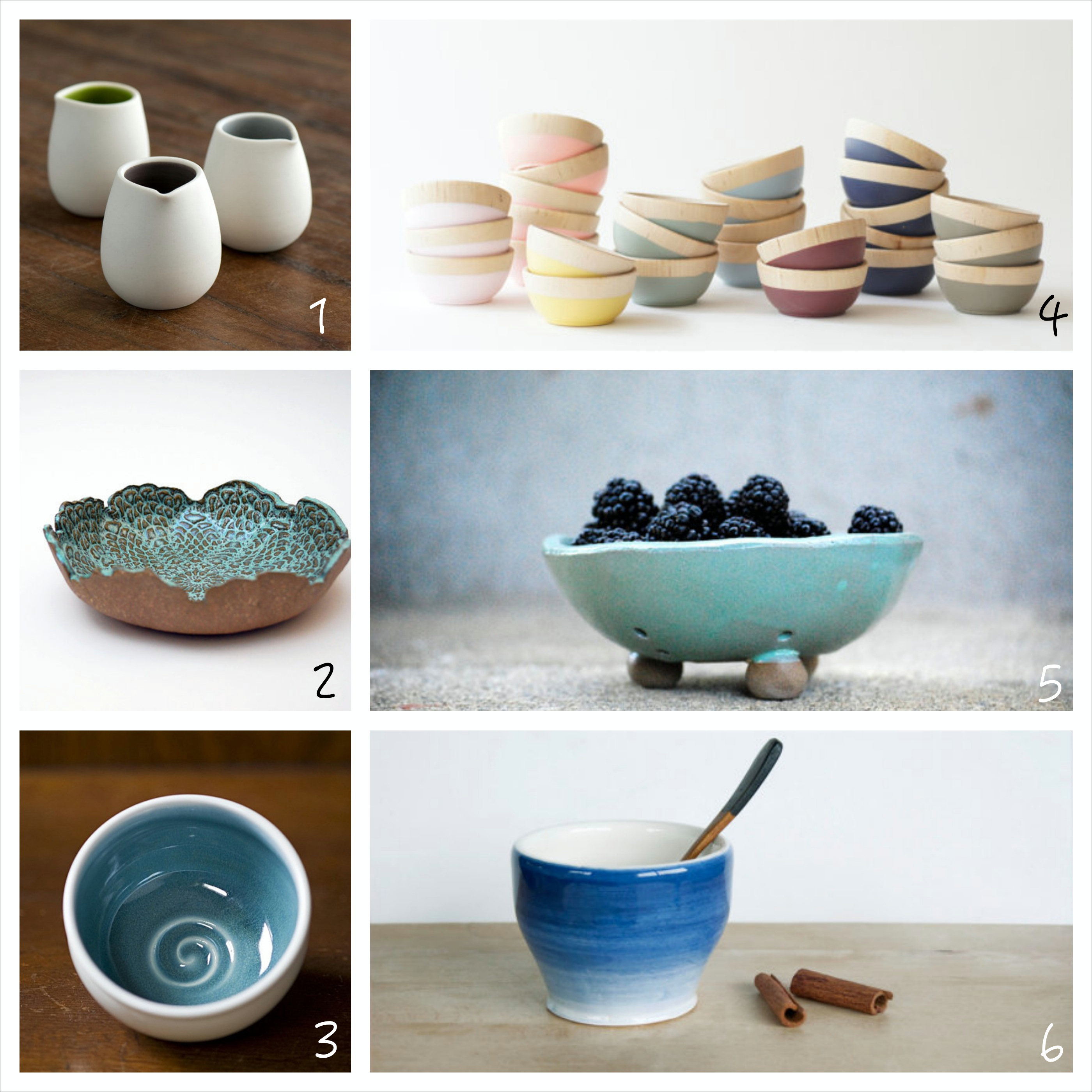 1. PigeonToeCeramics 2. LaurenSumnerPottery 3. juliaedean 4. WindandWillowHome 5. claylicious 6. noemarin