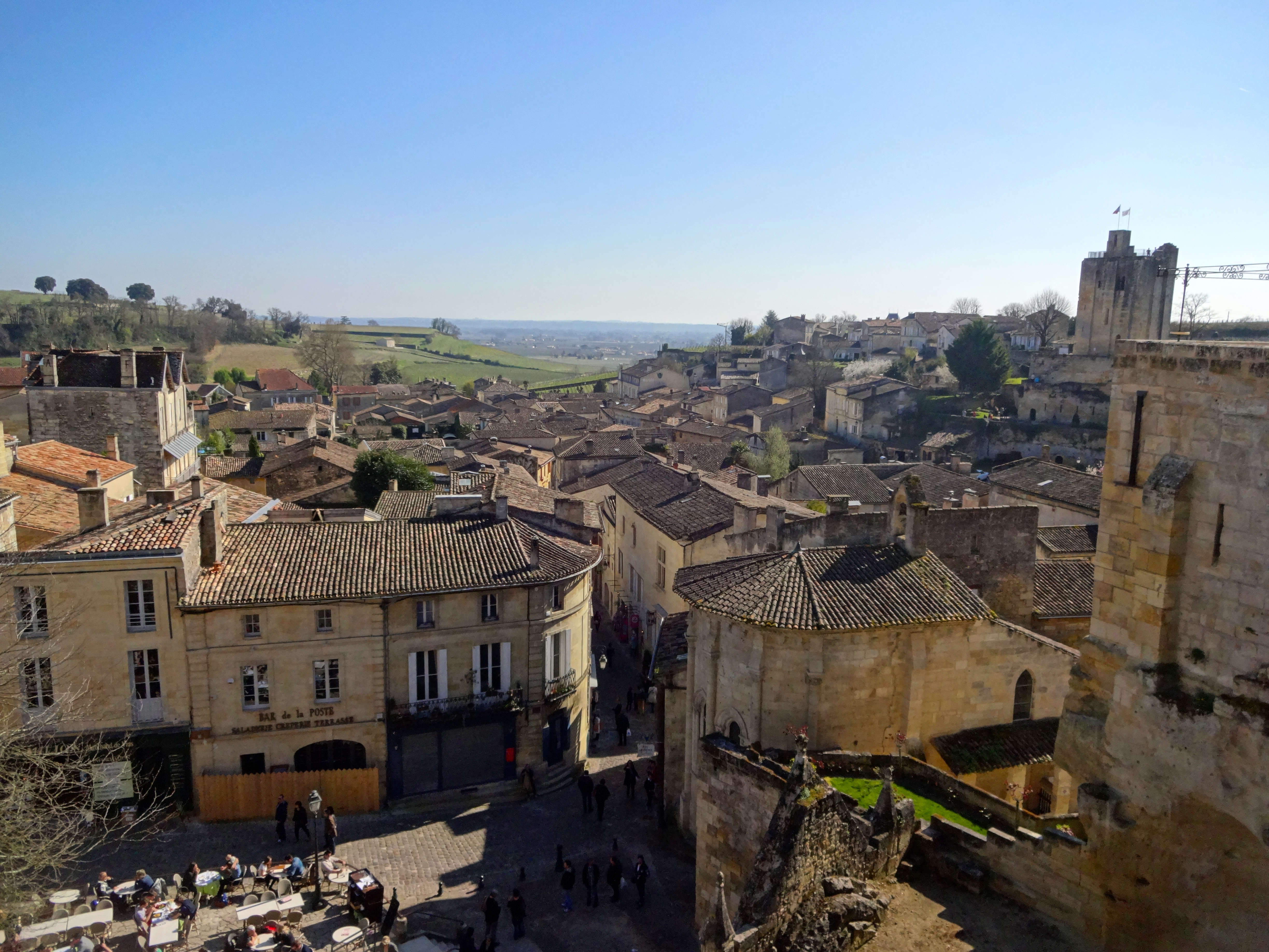 Hellooo! J’espère que vous allez bien? Bon, le temps a décidé d’être pourri ce week end mais la semaine dernière, lorsque j’ai pris ces photos, il faisait beau. Je vous propose un peu de soleil en partant à la découverte de Saint-Emilion. Ce petit coin est à seulement 40 minutes de Bordeaux et c’est un vrai rafraichissement, loin de la ville et surtout, des voitures. Je vous conseille vivement d’y aller en ce moment, c’est à dire tant qu’il n’y a pas trop de monde parce qu’après c’est l’horreur pour se promener et prendre des photos (je ne vous parle même pas des visites ^^). Vous pouvez bien sûr vous renseigner amplement grâce au site de l’office de tourisme (cliquez ), il y’a pas mal de choses à faire gratuites et payantes, vous y trouverez aussi un plan des choses à voir (et donc les explications des photos ^^). Vous n’êtes pas obligé de faire des visites pour apprécier l’endroit, nous avons seulement visiter le Donjon du Roy (prix 1€50 par personne) et les caves des vignobles Galhaud (entrée libre) et avons largement apprécié l’après-midi au grand air. Je vous emmène, hop!