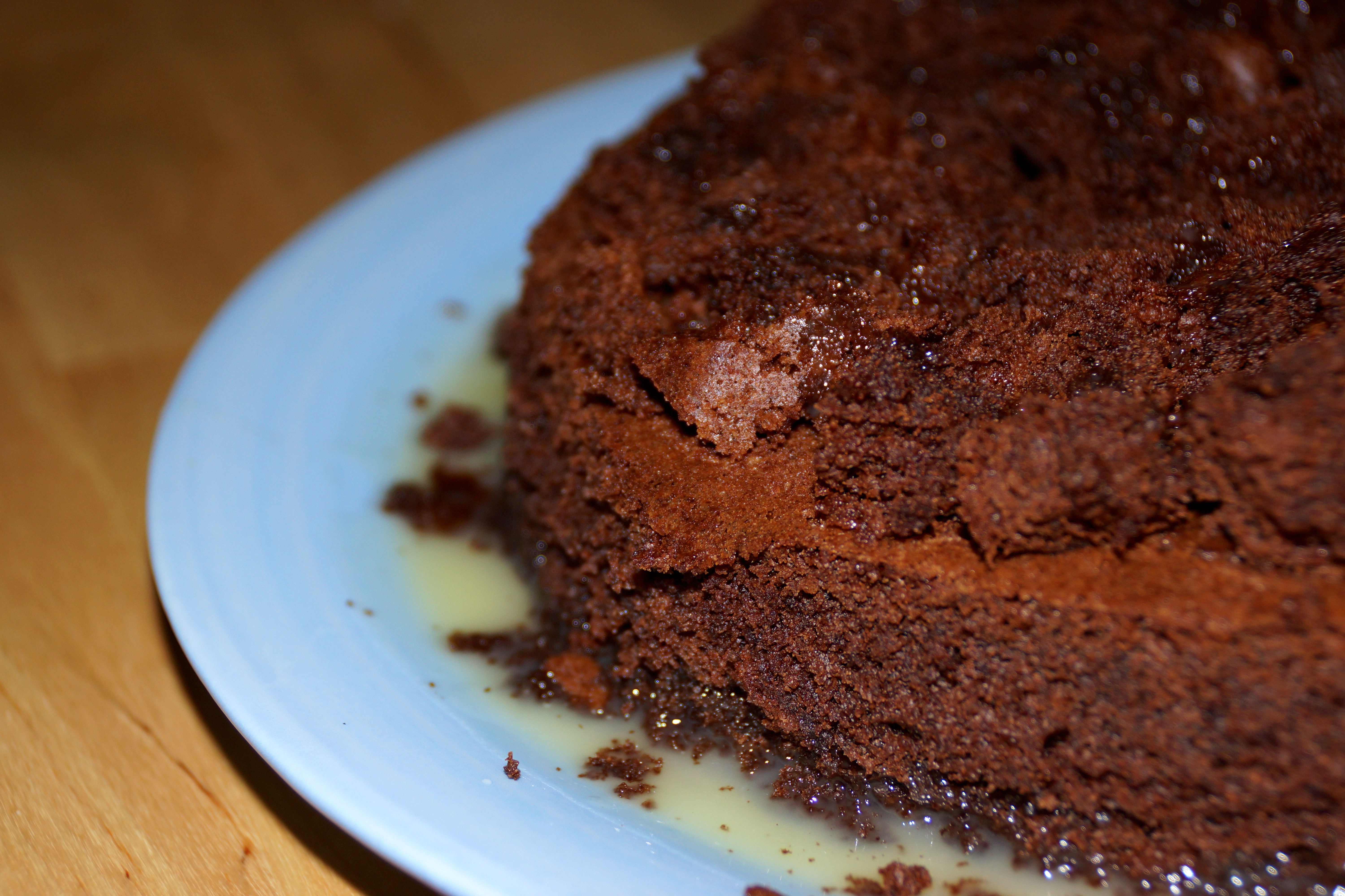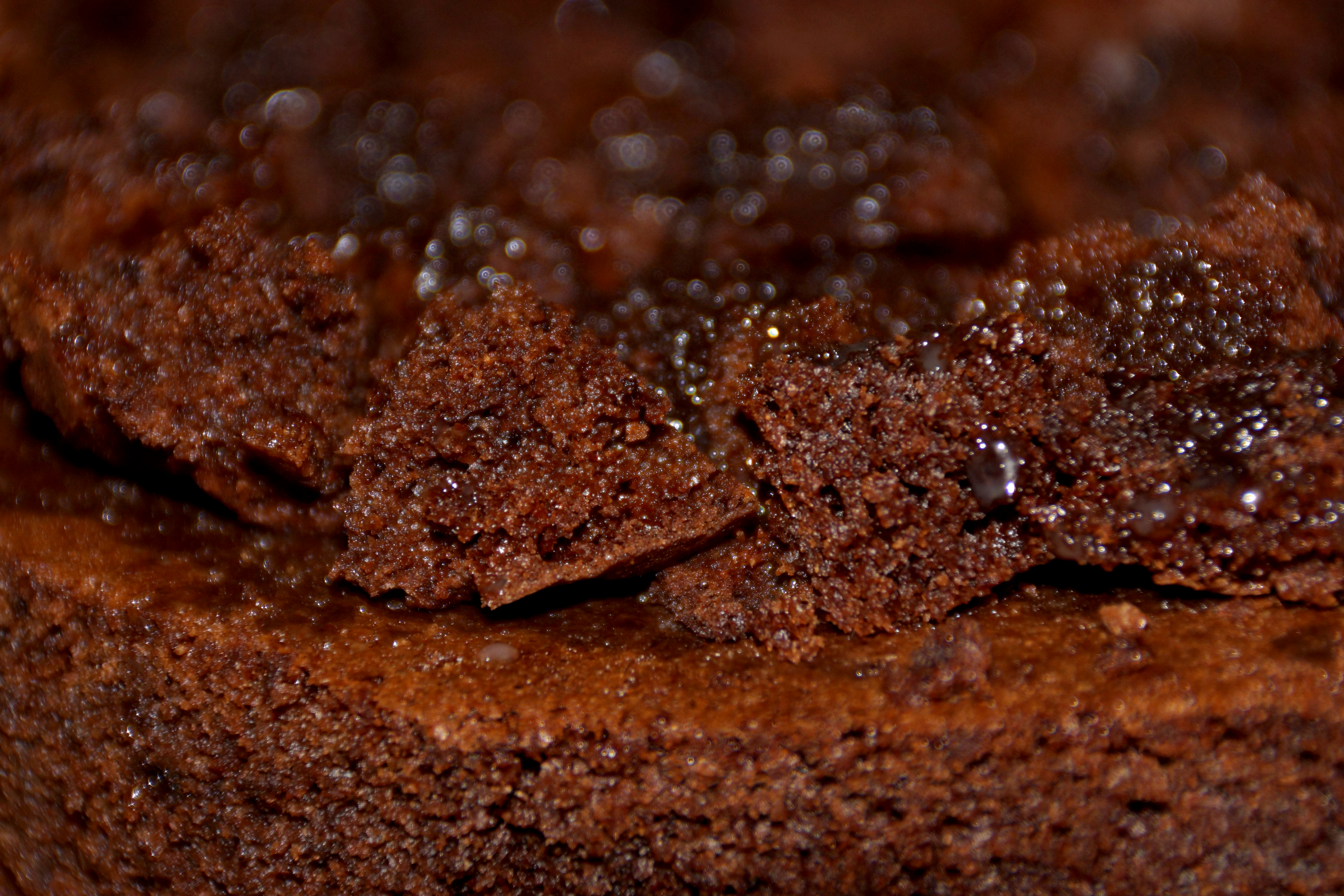 A l’aide d’un cercle, faites un trou au milieu du gâteau pour faire une sorte de puits dans lequel vous versez le caramel beurre salé. De cette façon le gâteau va bien s’en imprégner et vous en aurez le goût partout, évidemment j’en ai mis largement assez pour que ça déborde sur les côtés.