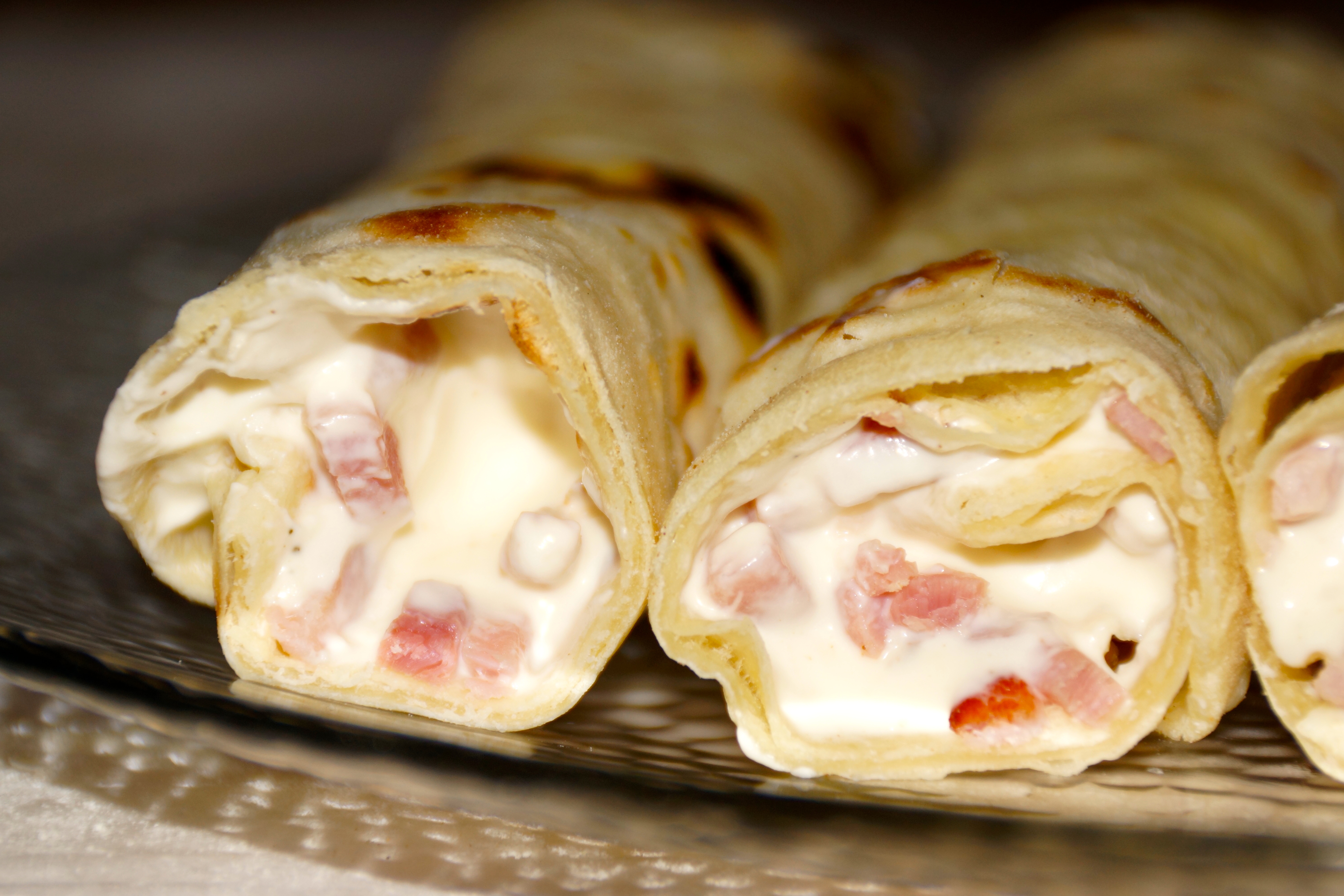 Faites cuire vos lardons, ajoutez la crème fraiche et le Philadelphia. Assaisonnez de poivre et recouvrez-en les galettes. N’en mettez pas trop sinon ça va déborder et dégouliner. Roulez vos galettes. Vous pouvez les manger chaudes, comme froides, of course.
