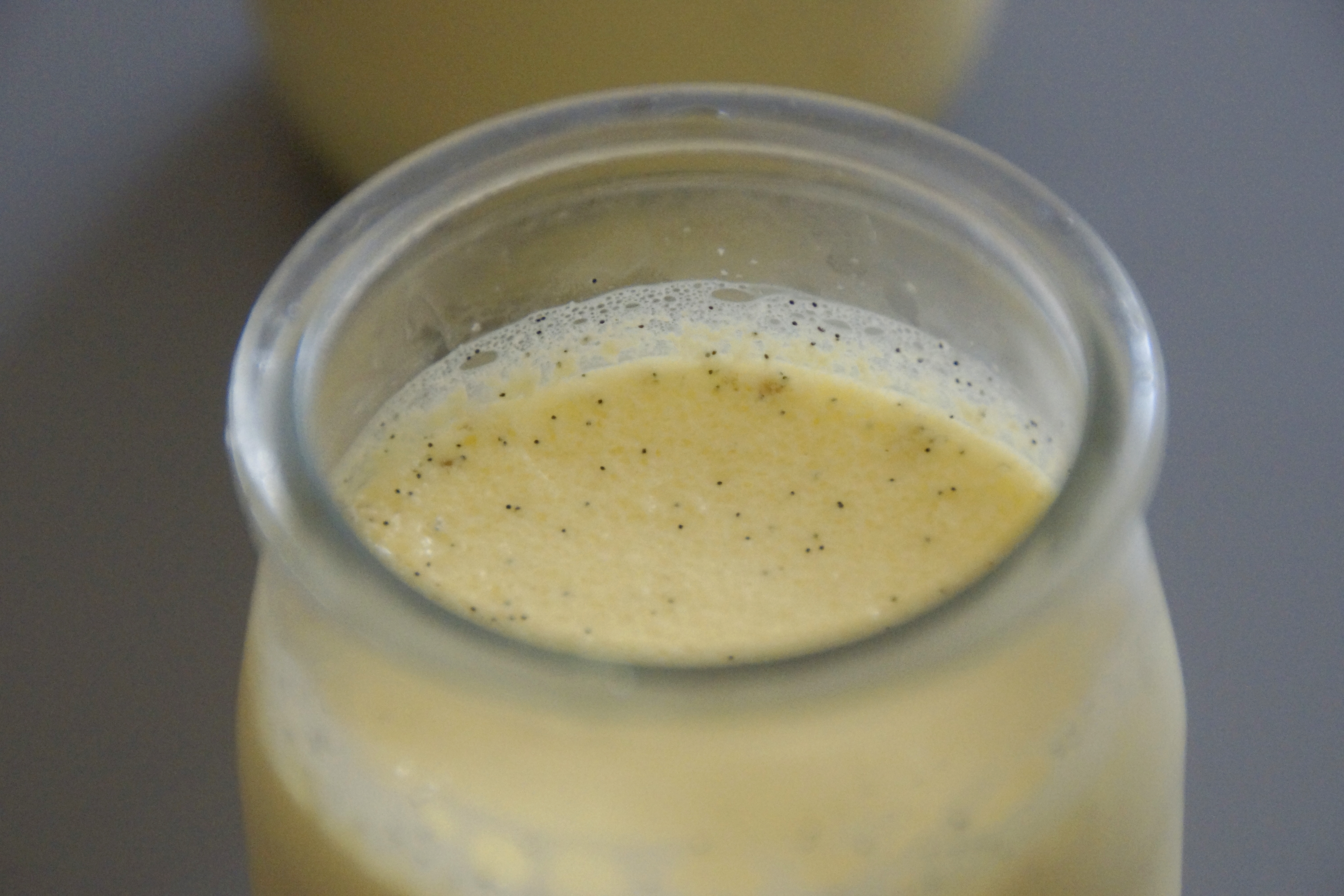 Pour 6 pots: 30g de fécule de maïs, 60g de sucre en poudre, 50cl de lait entier (de préférence cru), 3 jaunes d’oeufs, 1 gousse de vanille.