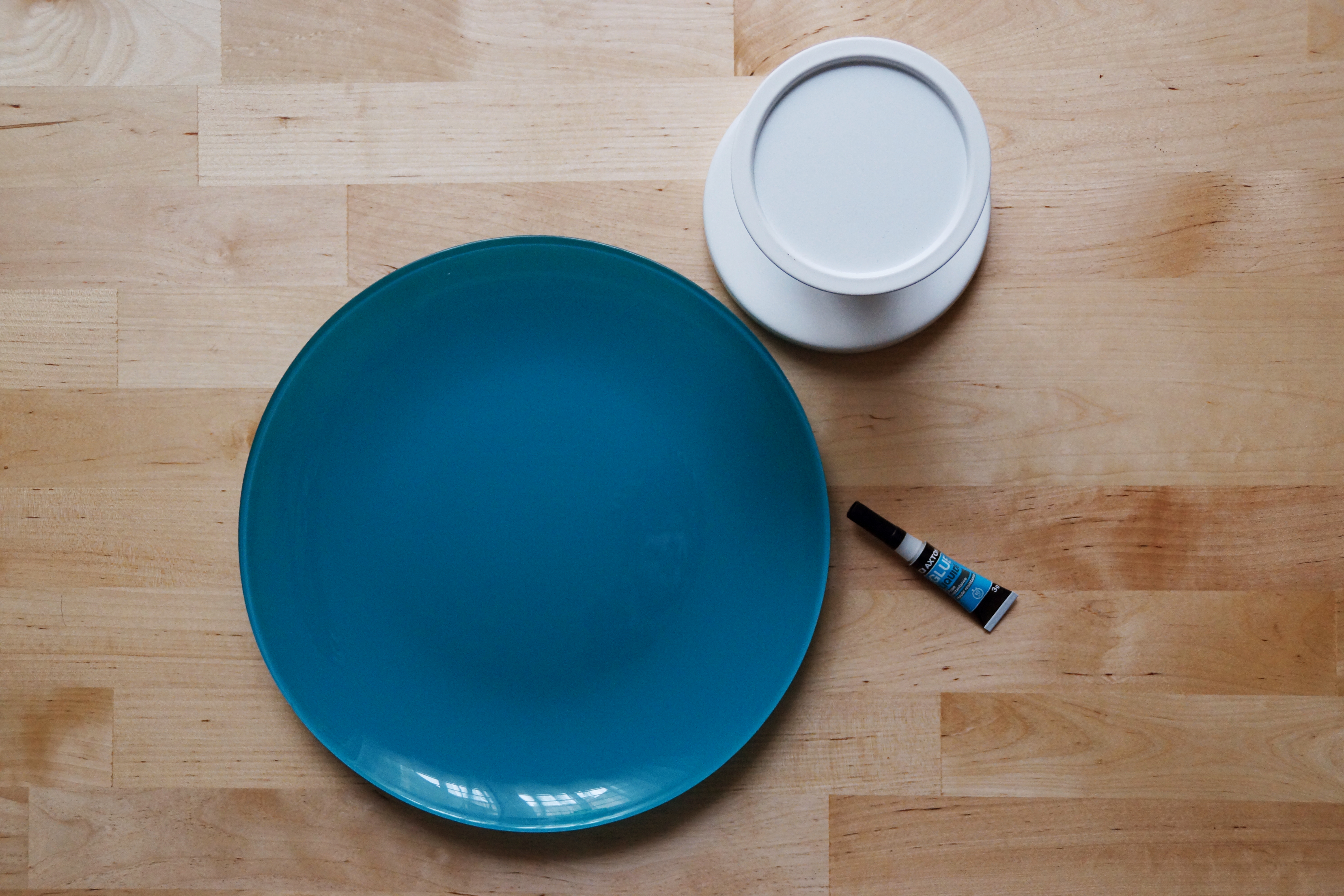 Il vous faut: un bougeoir (7€99 chez Ikea), une grande assiette (5€99 chez Ikea), de la super colle.
