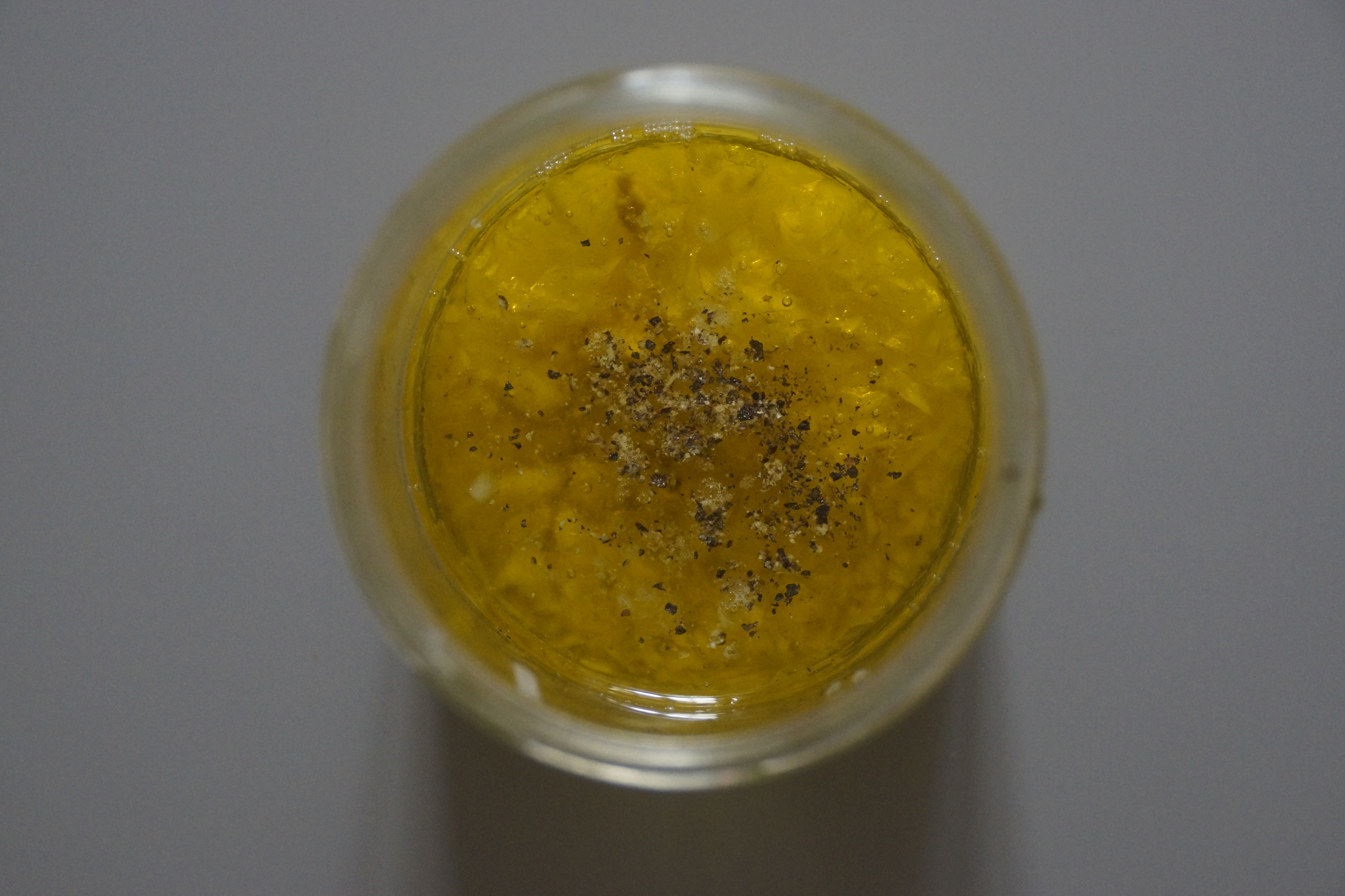Il ne vous reste qu’à mettre les ingrédients dans un shaker ou un pot que vous pouvez refermez (j’ai pris un pot à confiture). Vous shakez pour que le tout se mélange bien et voilà, c’est fait. En réalité le plus long est d’attendre que l’artichaut soit cuit.
