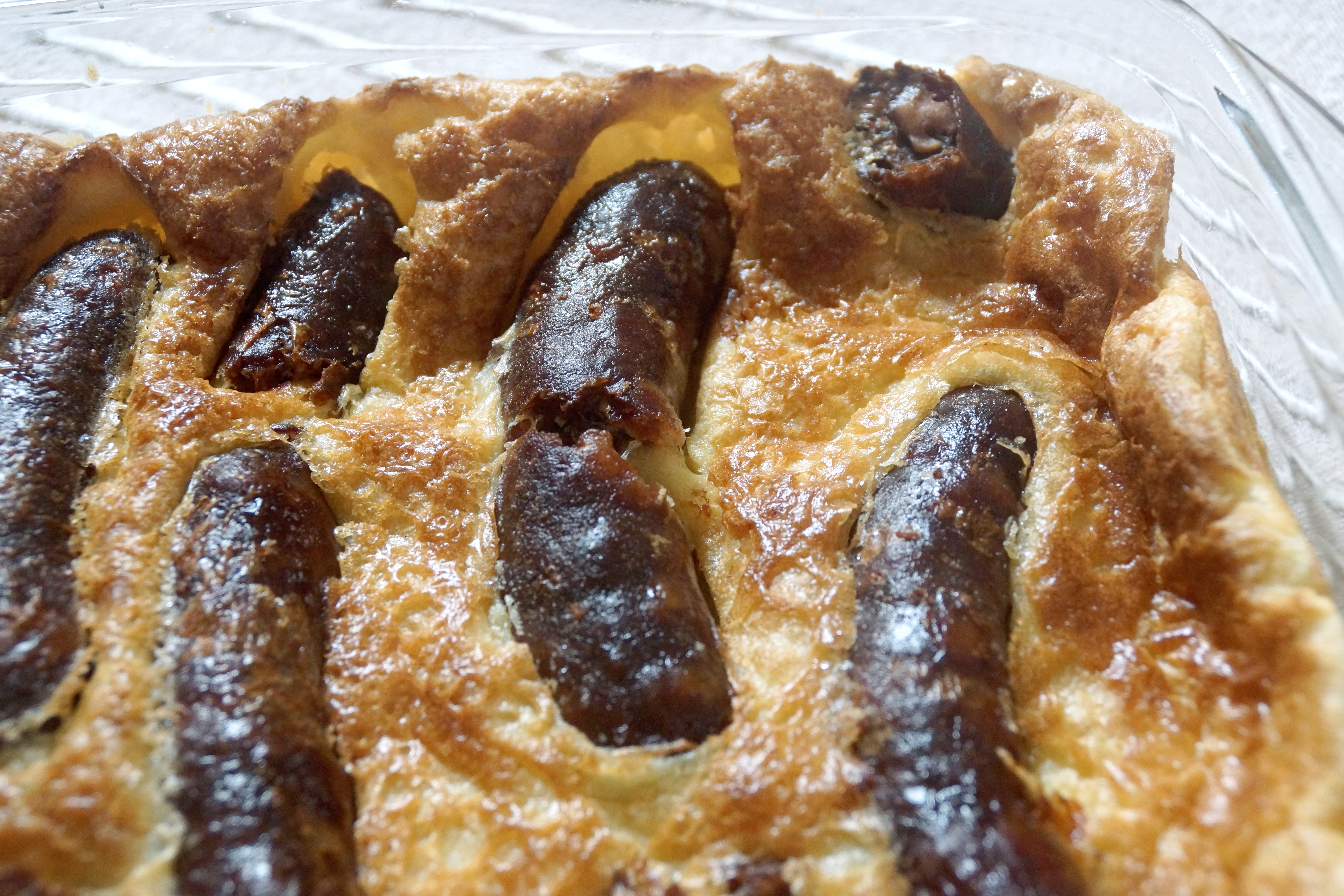 Hello! J’espère que vous allez bien?! Aujourd’hui je vous propose une recette trouvée dans un livre British; elle est ultra simple, ne prend pas réellement de temps à faire et surtout elle change de ce que l’on a l’habitude de manger! Pour ceux qui se méfient de la cuisine d’Outre Manche je trouve que commencer avec ce plat est une bonne idée. Moi j’vous dis que vous allez aimer ces saucisses sur pâte à crêpe et quand vous aurez des invités vous voudrez leur faire goûter… (Oui, je vous l’accorde, ça a l’air un peu gras, mais chuuut ça se sent pas!)