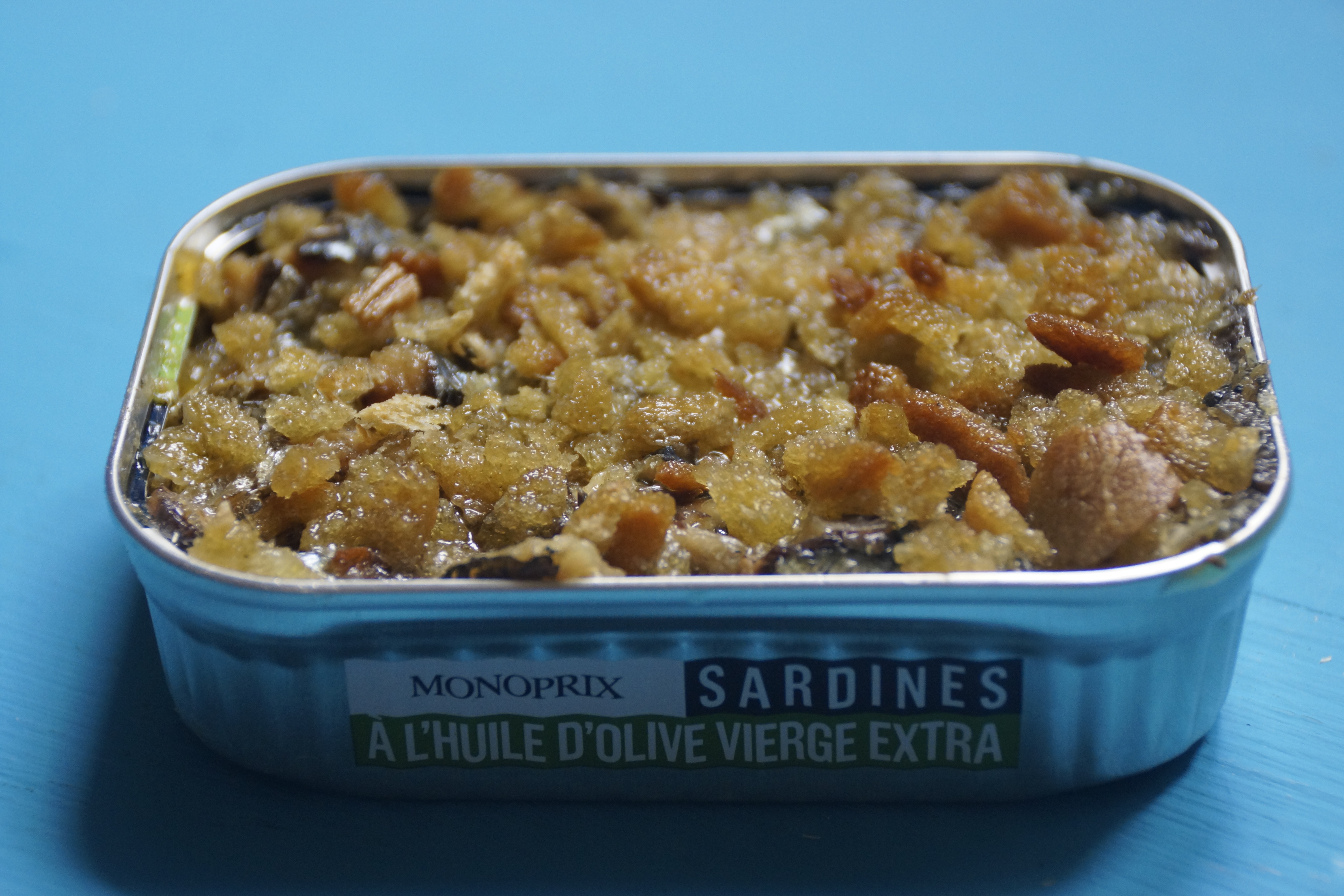 Il vous suffit simplement d’ouvrir votre boîte de sardines, de les écraser et de les mélanger un peu avec une fourchette. Ensuite, placez de la chapelure (ou des Tuc) dessus et enfournez 10/15 minutes. Voilà!