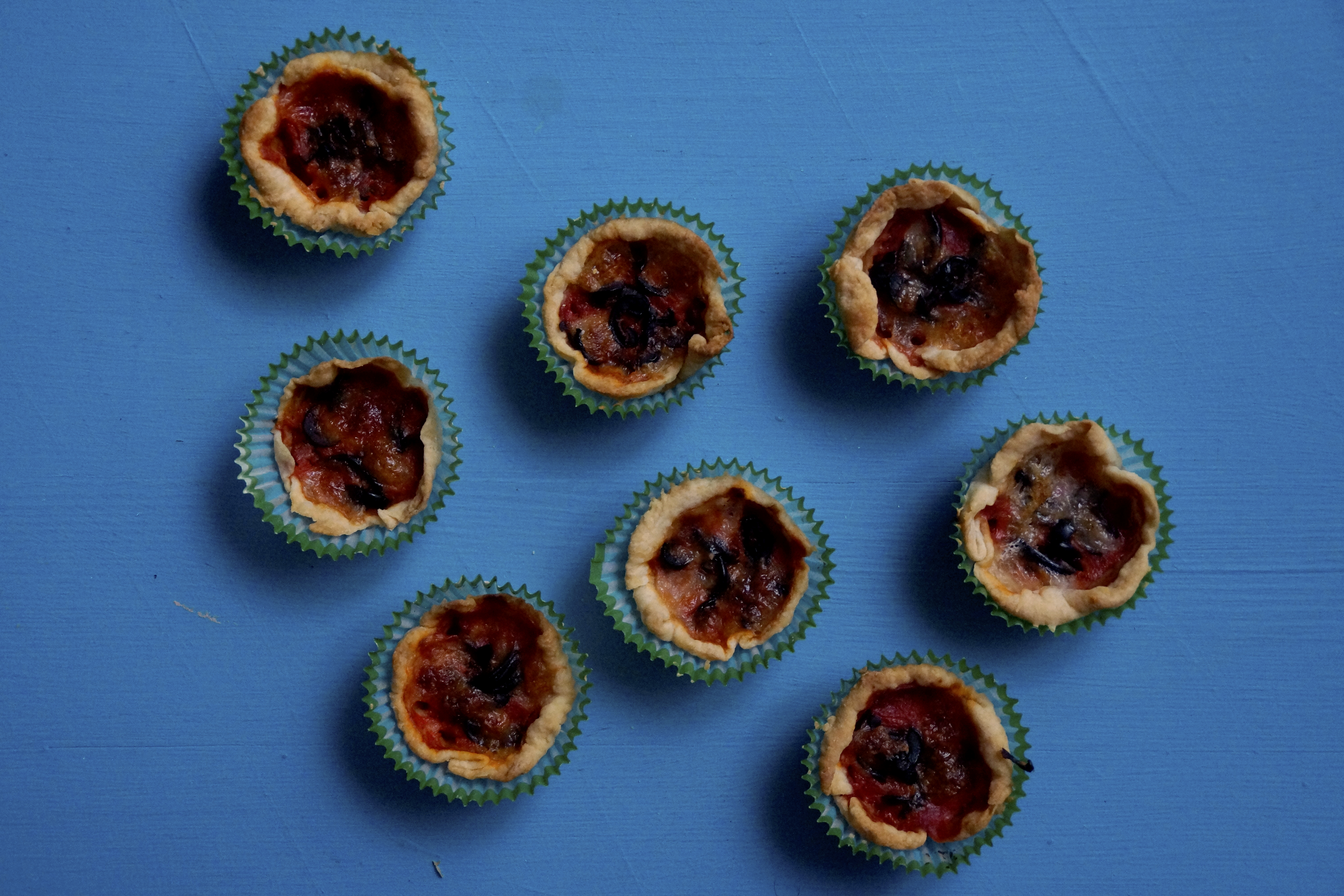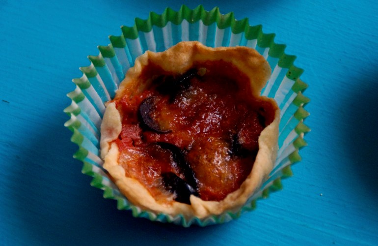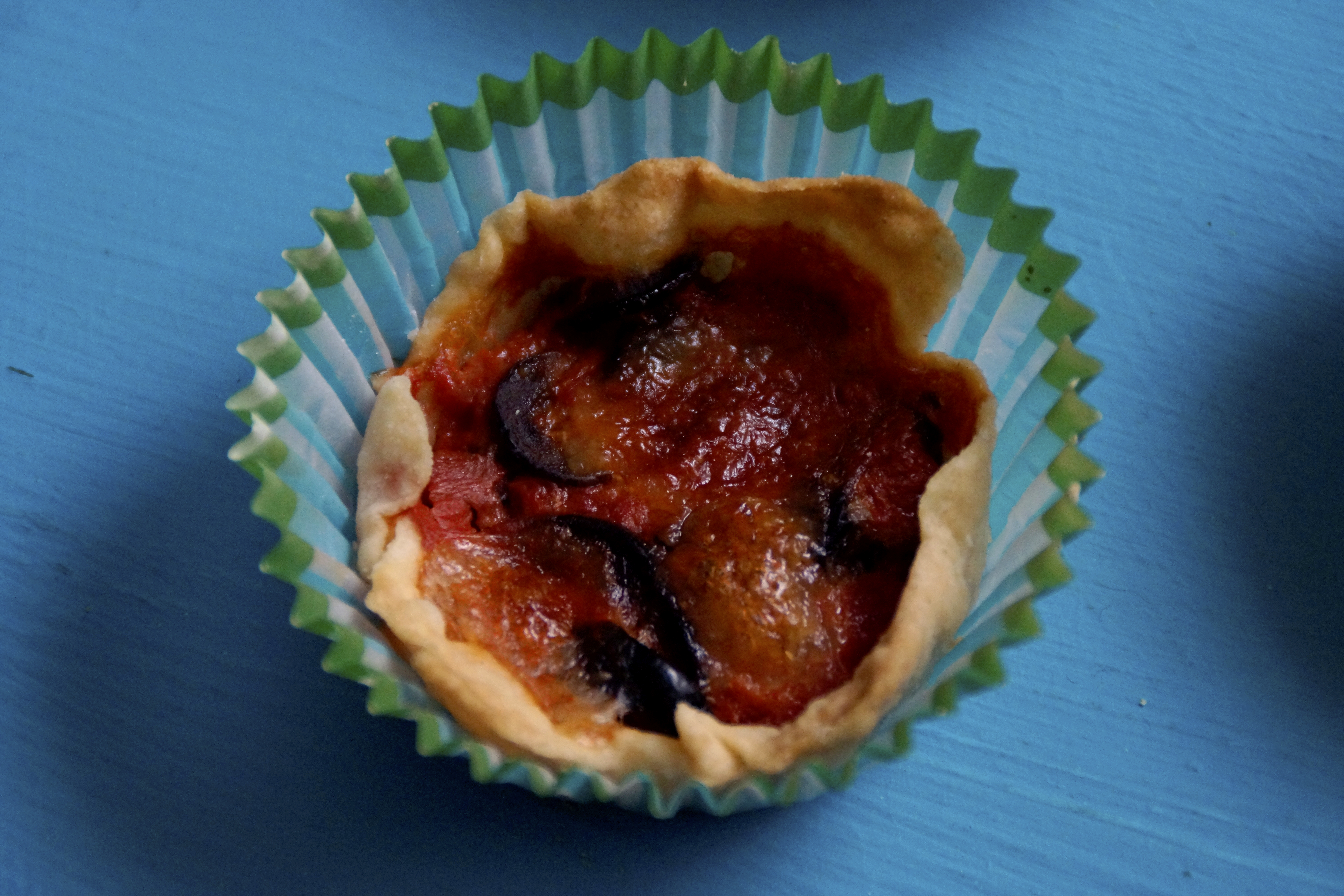 Les ingrédients, pour une bonne dizaine: une pâte feuilletée, du coulis de tomates, une mozzarella, des olives noires. Des caissettes pour cupcakes seront bien utiles aussi ;)