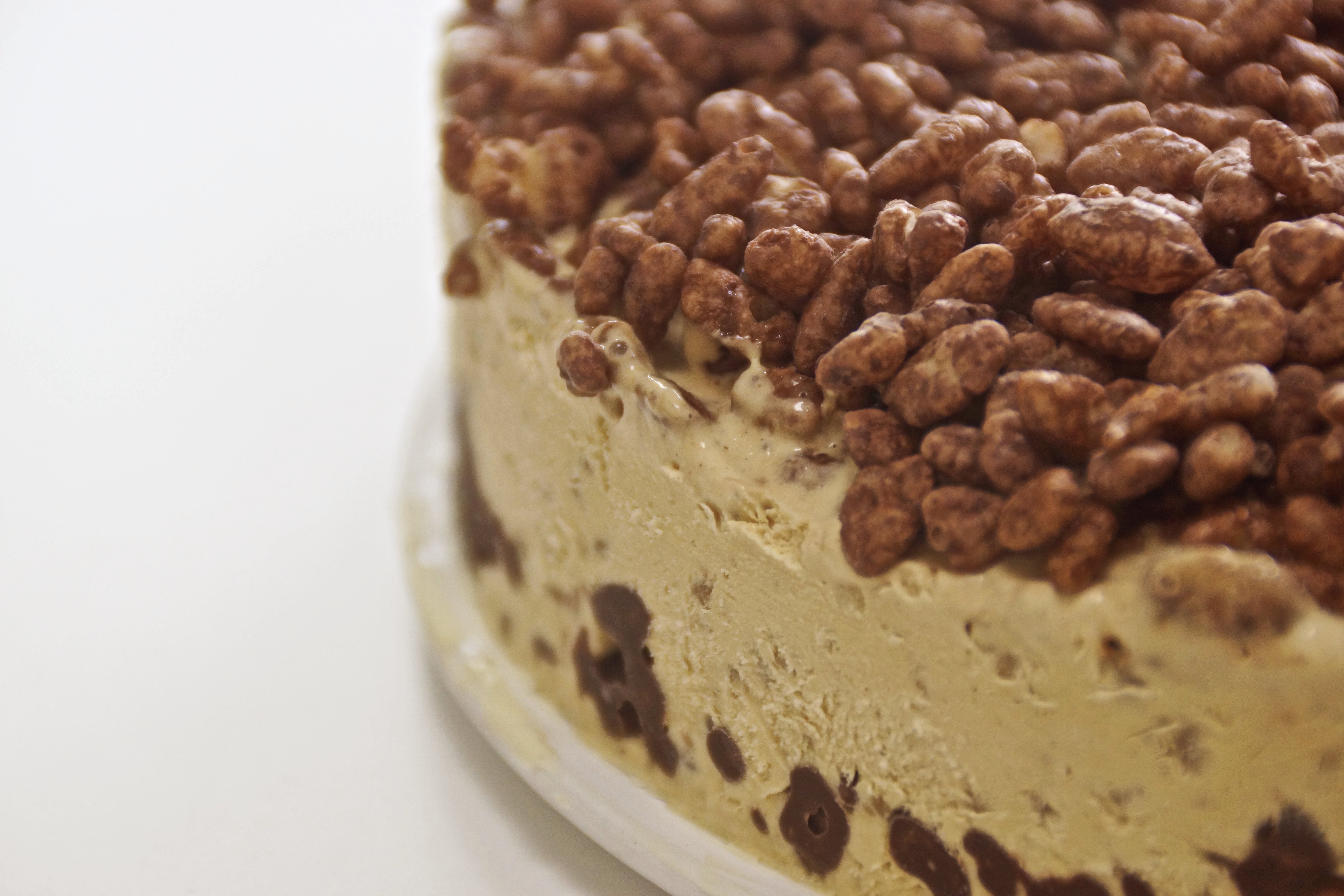 Déposez votre mélange de glace à la vanille et de confiture de lait au dessus de votre fond en Coco Pops et chocolat au lait. Placez au congélateur au moins 2 heures et sortez le Coco Pops Cake quelques minutes avant de le déguster (environ 10 minutes).