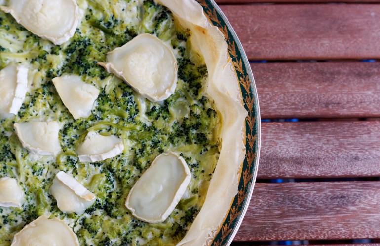 Préchauffez votre four à 180° et beurrez un moule à tarte. Faites cuire vos brocolis à la vapeur ou dans une casserole d’eau salée. Pendant ce tempes, posez les feuilles de brick une à une en les beurrant légèrement à chaque fois afin que la suivante se colle.