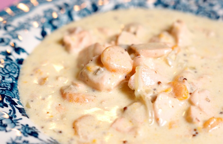 Faites fondre les 13g de beurres restant dans une casserole et ajoutez-y la farine; mélangez et laissez épaissir. Ajoutez ensuite le bouillon de volaille, laissez épaissir puis ajoutez la crème fraiche liquide et la moutarde à l’ancienne. Salez, poivrez et ajoutez le persil.