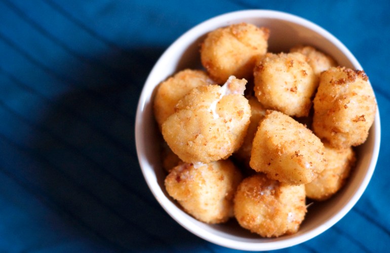 Le mieux, vous verrez, c’est quand vous croquez dans la croquette (très étrange, non?) et que le fromage coule. Tellement enfantin mais tellement beau et gourmand…