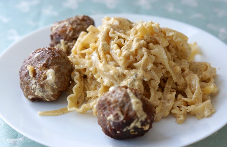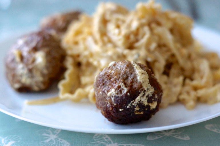 Vous pouvez bien évidemment manger ces jolies boulettes de boeuf à la mozzarella avec une traditionnelle sauce bolognaise mais, ne vous inquiétez pas si vous n’avez que de la crème, un peu de moutarde à l’ancienne; elles se marient très bien avec et vous vous régalerez.