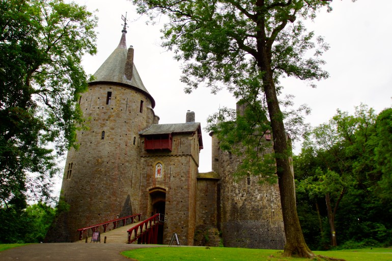 Olala, un nouvel article déjà, si c’est pas beau tout ça! En plus, aujourd’hui je vous amène en balade dans un château à seulement 20mn du centre de Cardiff. Bien que le château soit facilement accessible, en bus, en voiture et même en vélo grâce à un chemin partant de Cardiff centre nous avons mis un moment à le visiter. Avant de commencer la visite, faisons un point sur son petit nom: il s’appelle Castell Coch en gallois et Castle Coch en anglais, comme vous avez pu le deviner facilement « castell » est le mot gallois pour « castle » en anglais, qui donne « château » en français. Mais alors, que veut dire « coch »? Eh bien « coch » veut dire rouge en gallois. Eh oui, vous allez le voir, le château est fait de gravats de grès rouge ce qui explique la présence de la couleur dans ce joli petit château.