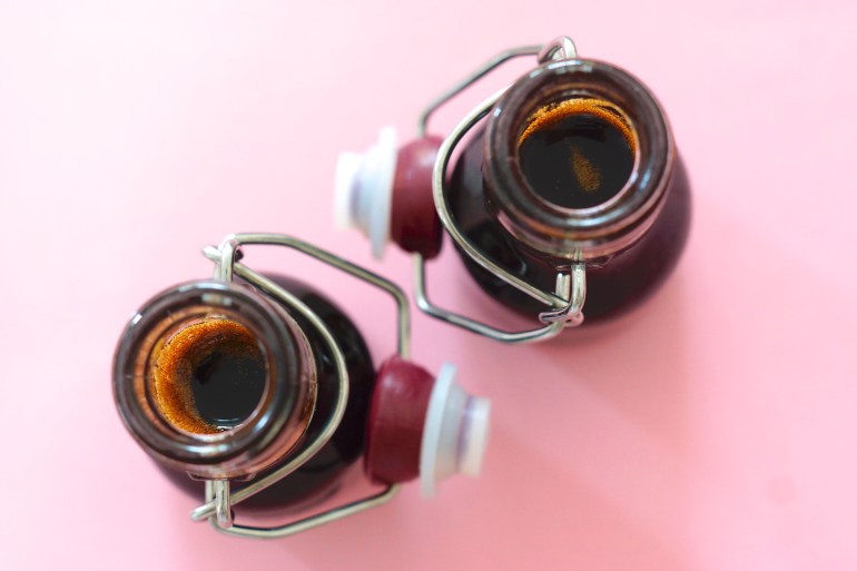 Quelques petites notes: cet extrait se conserve au frais plusieurs mois, si de la mousse se forme ce n’est pas grave, il vous suffit de l’enlever. N’essayez pas, ça ne marche pas avec du café normal… Non, non, me suis trompée de café et ça n’a pas marché. Triste échec ahah