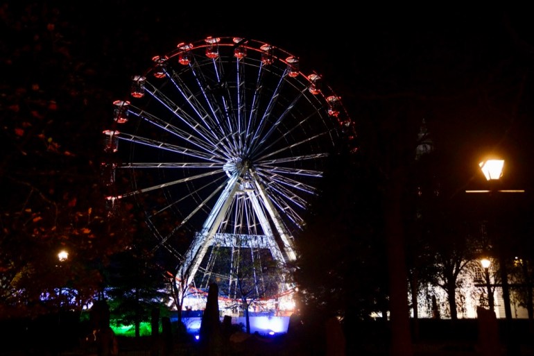 Tout d’abord, il y a les animations sur la place de la mairie avec de quoi faire plaisir aux plus petits: des manèges kitsch mais aussi aux plus grands avec la grande roue, la patinoire et de quoi régaler nos papilles. Nous avons juste été faire un tour vite-fait (je ne voulais pas rater le Père -Noël dans les rues…) mais j’aimerai beaucoup aller patiner et faire un tour sur la grande roue. Le Barbu serait bien rester plus longtemps à la patinoire parce qu’il aime bien regarder les gens tomber, cet homme est diabolique.