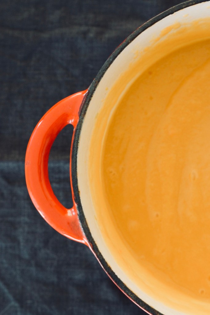 J’utilise une casserole bien épaisse, en fonte pour mes soupes mais si vous n’en avez pas, vous pouvez utiliser une casserole anti-adhésive, à bords épais.