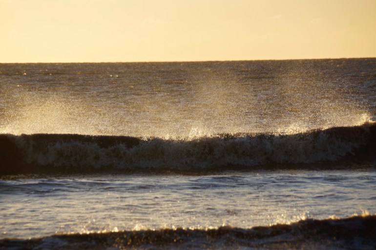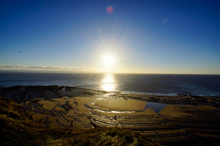 Les couchers de soleil m’ont toujours plu, je trouve ce moment magique. L’effet du soleil doré sur le sable, les falaises qui s’illuminent, la mer et le ciel qui se transforment en or, et le bruit des vagues. What else?