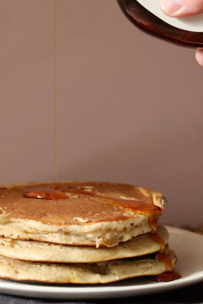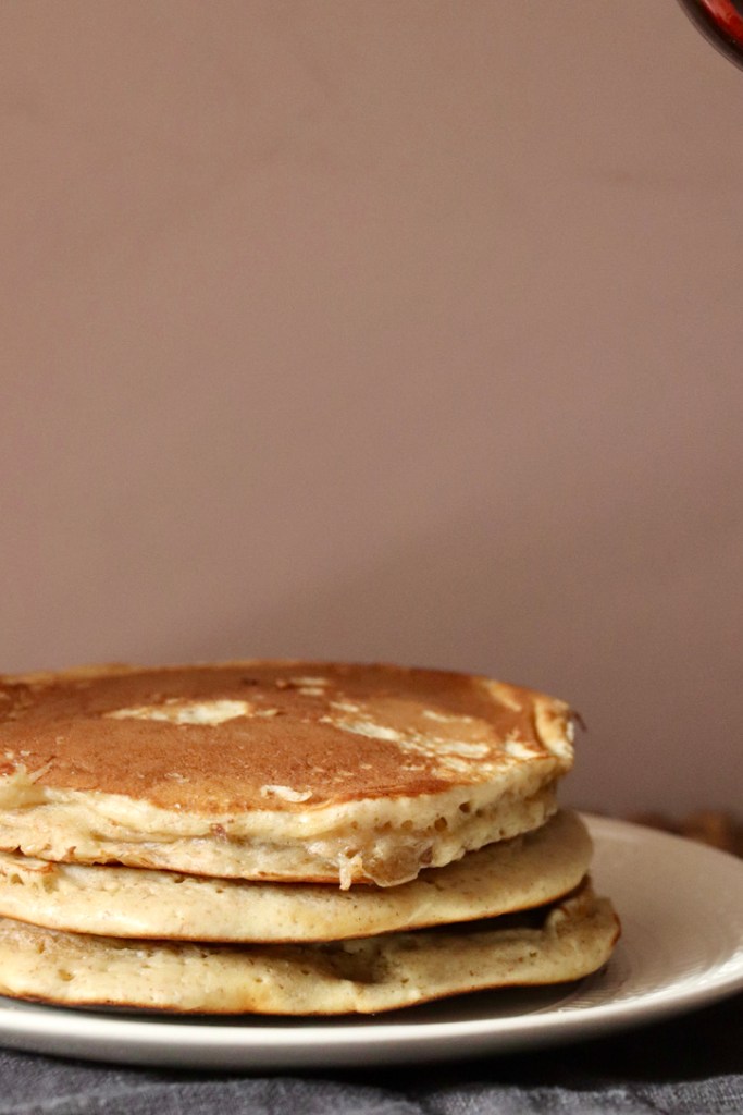Toujours ce sentiment de ne plus savoir écrire, étrange. Toujours l’impression de ne pas avoir de légitimité à écrire ici, mais hey, me voilà. Vendredi soir, en cherchant dans un carton un carnet de recettes bien précis je suis tombée sur tout un tas de choses : des tickets de concerts, des dossards de courses, des photos, une écharpe, un carnet précieux… Et dans ce carnet précieux, il y avait, entre autre, des notes prises pour le blog en 2011. Il y a 12 ans donc. Et je me suis dit « wahou, ça fait si longtemps que ça dure… », c’était d’abord très intense, il me permettait de m’échapper de mes cours de psycho qui me laissaient beaucoup de temps libre ; puis ça s’est calmé, c’est devenu moins réguliers mais j’y trouvais refuge. Et me voilà, 5 mois après avoir écrit ici pour la dernière fois. C’est fou les effets d’un vieux carnet. Il y avait déjà une recette de pancakes ici mais, au fil du temps, je l’ai peaufiné, puis j’en ai trouvé d’autre, puis j’ai trouvé la recette. Celle que j’aime et qui fait des pancakes moelleux. Je suis cool, je partage, c’est tout moi.